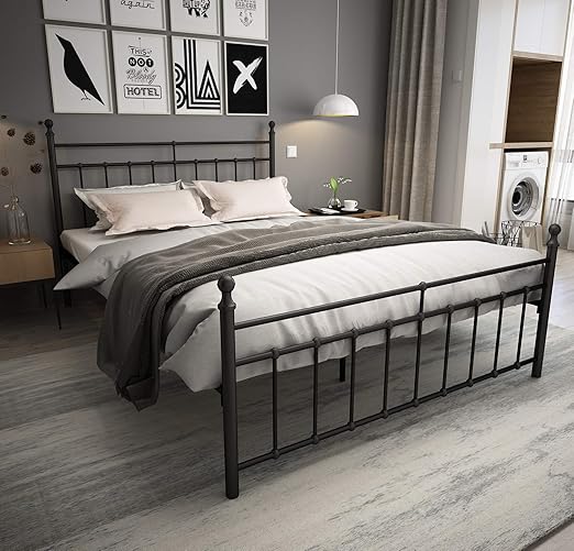 Metal Bed Frame Queen Size With Black Ball Headboard And Footboard The Country Style Iron Art Double Bed The Metal Structure Matte Black Baking