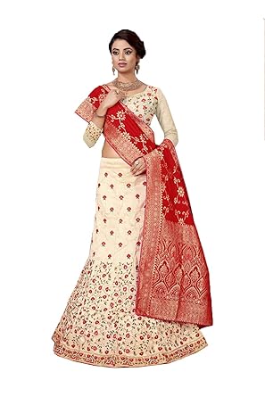 Cream Colour Bridal Wear Silk Satin Designer Lehenga Heavy
